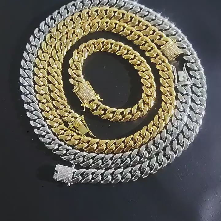 Cylindrical Stone Inlaid Open-Box Clasp Cuban Chain-Gold VRAFI